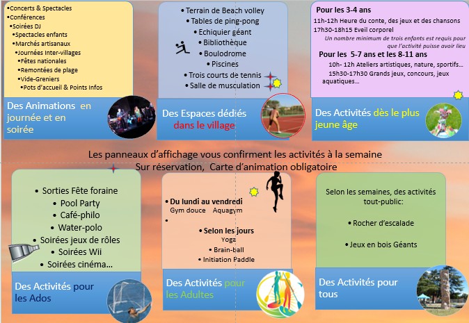 Les panneaux d’affichage vous confirment les activités et animations à la semaine